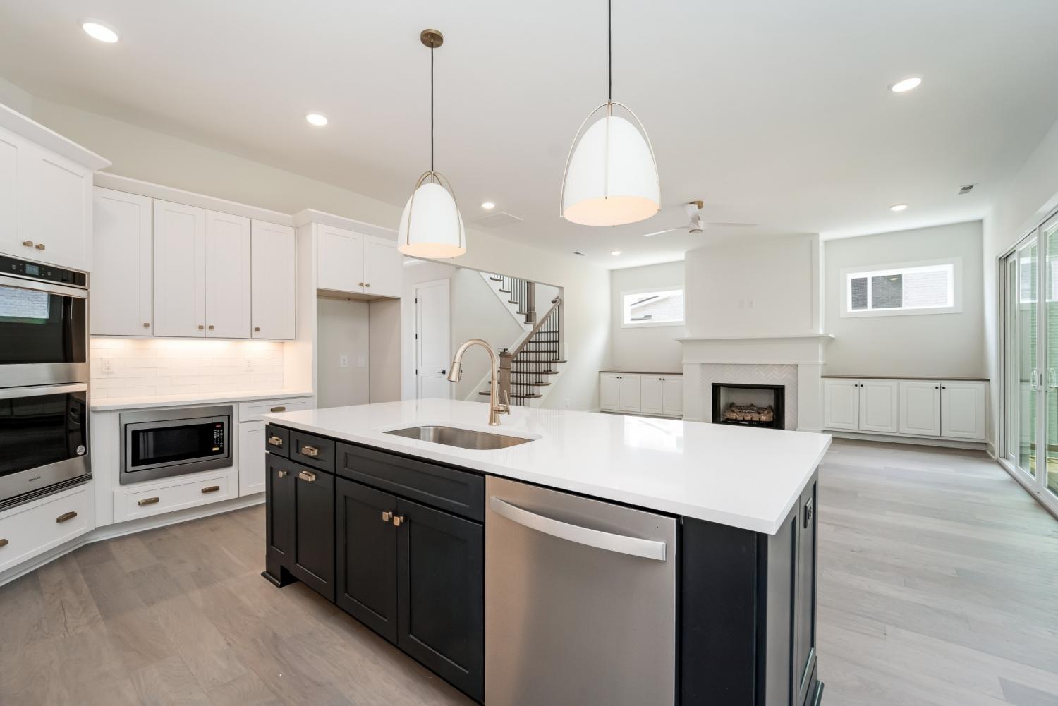 The heart of the home is the chef-inspired kitchen, featuring a spacious island, a gas cooktop, double ovens, stainless steel appliances, custom cabinetry with soft-close doors, a tiled backsplash, and much more. Every detail is designed for both beauty and functionality.