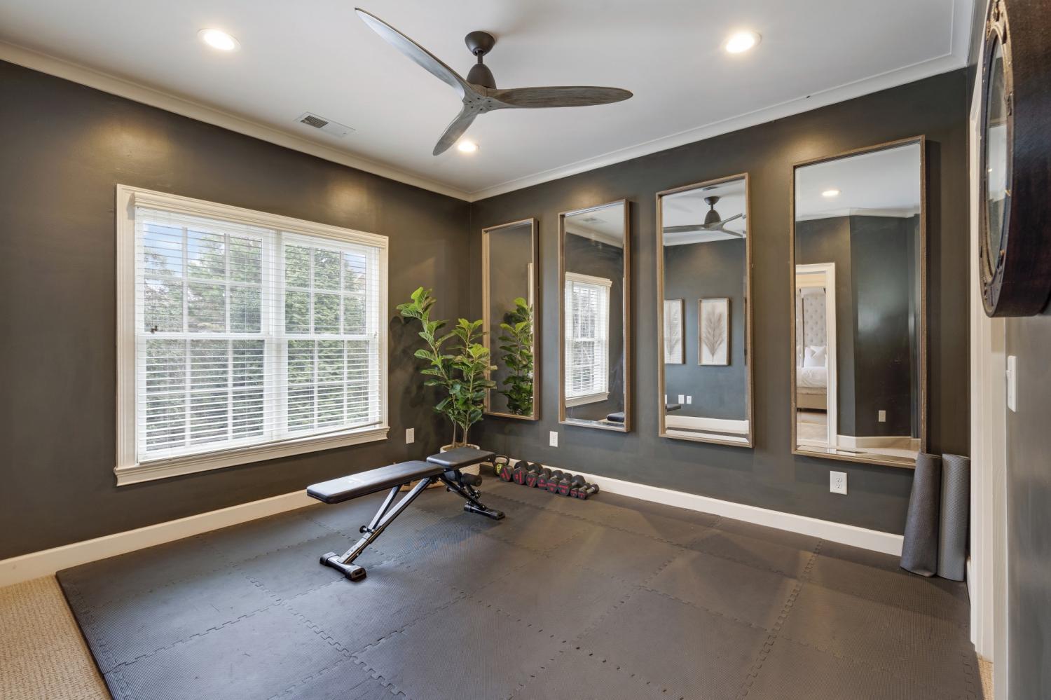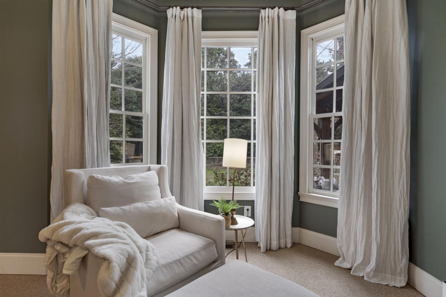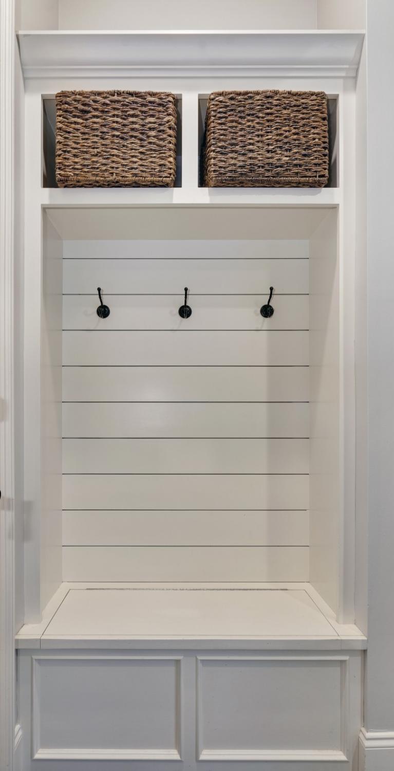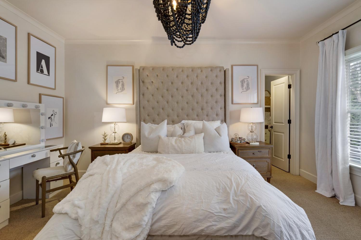 Additional improvements include renovated upstairs baths, new washer and dryer (2023), all toilets replaced (2024), fresh white exterior paint (2024), custom drapery, built-in storage in the primary suite, utility sinks in the laundry and garage, and optional inclusion of mounted TVs.