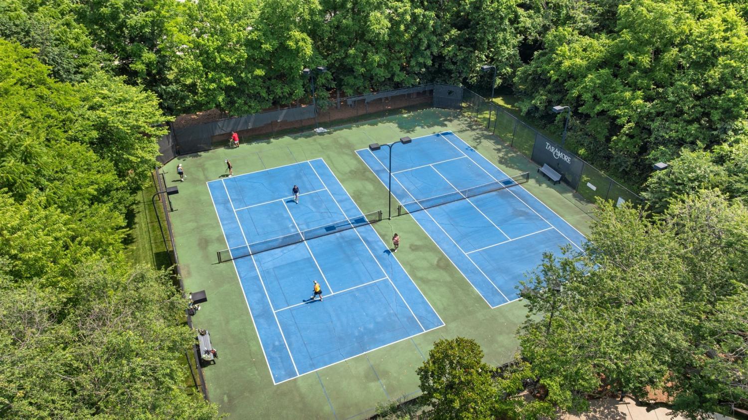 Residents enjoy resort-style Taramore amenities including pool with slide, historic mansion clubhouse with fitness center, tennis and pickleball courts, playground, stocked fishing pond, sidewalks, and scenic walking trails.
